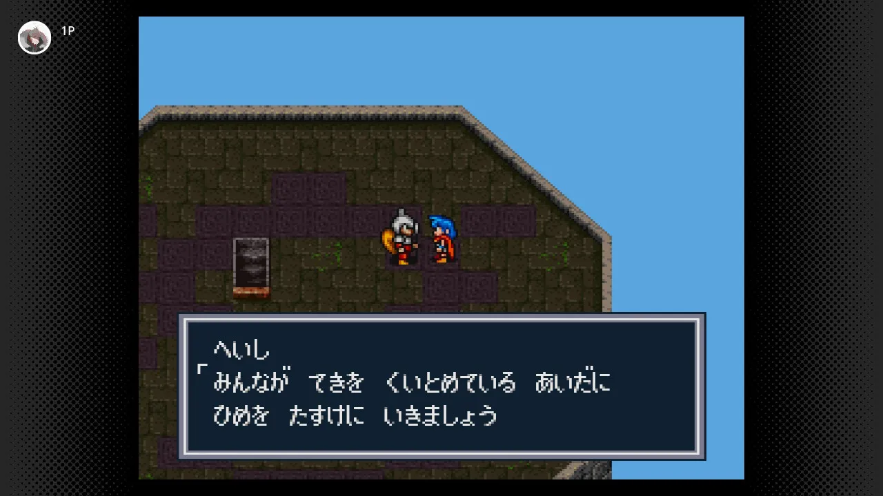 兵士2は兵士1に姫を託し、塔の上へと戻る。